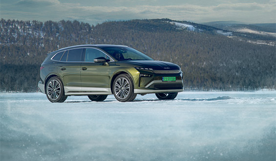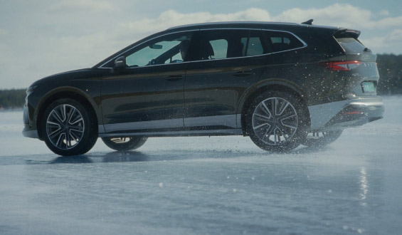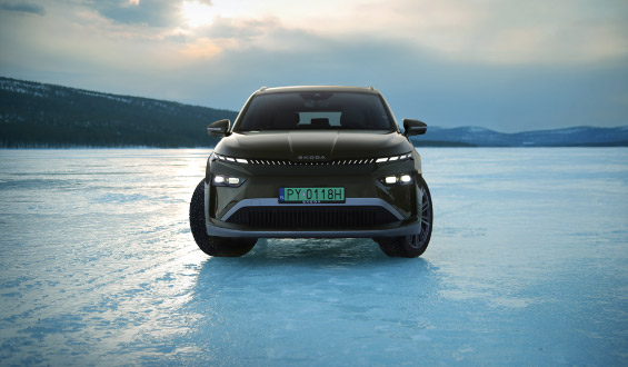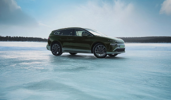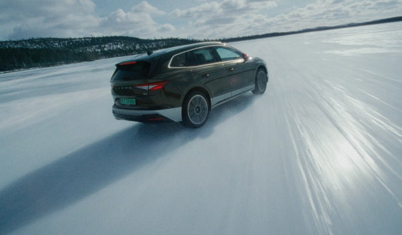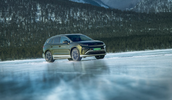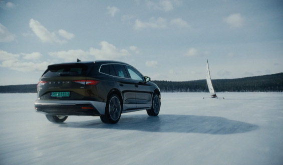 W takich warunkach spotyka się dwójka niezwykłych ludzi i dwa niezwykłe pojazdy: stworzony do jazdy po lodzie bojer oraz elektryczna Škoda Enyaq z napędem 4×4.